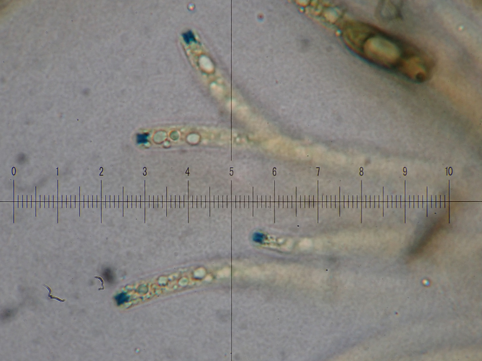 ... und hier relativ schmal in der Stielmitte eines jüngeren Pilzes: