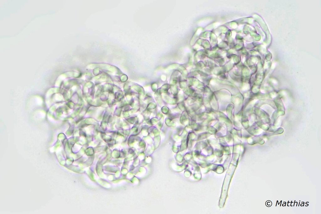 Deren Sporen ähneln hohlen Tonnen, bestehen aus gewundenen Hyphen und gehören für mich zu den schönsten Pilzsporen, die ich je sah.