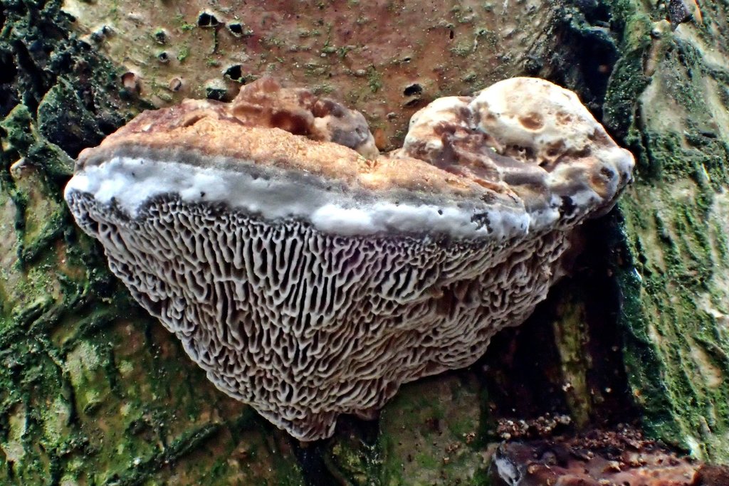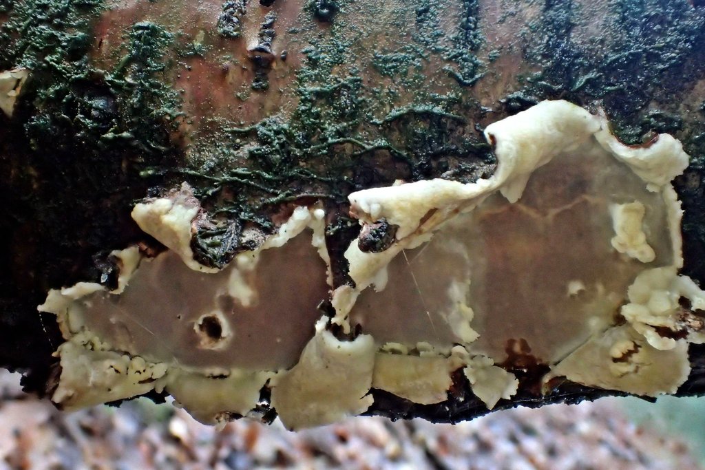 Einige junge Porlinge konnte ich entdecken, die ich für noch unreife Rötende Trameten (Daedaleopsis confragosa) halte.