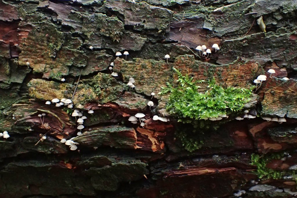 Und ich wurde reichlich belohnt. Gut 30 Pilzarten konnte ich entdecken. Sechzehn von denen, davon allein fünfzehn an Holz, möchte ich Euch gern zeigen.