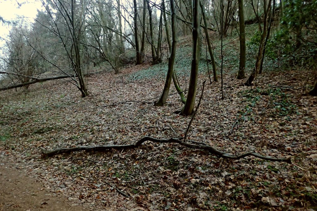 nachdem das Pilzjahr 2018, zumindest was die Großpilze anbelangt, hier größtenteils ausgefallen ist, trieb es mich bei dem trübem, regnerischen Wetter der letzten Tage nochmals hinaus in die Natur. Ich hatte mir ein Kleinbiotop ausgesucht, welches nur ca. 250 m Luftlinie von unserem Haus entfernt liegt. Es handelt sich dabei um einen ehemaligen, bereits vor Jahrzehnten aufgegebenen Garten mit starker Hangneigung am Eingang eines kleinen Tales. Gekennzeichnet ist es u.a. durch einige abgebrochene Äste, umgestürzte Bäume, uralte Haselsträucher und einen riesigen Efeuteppich.