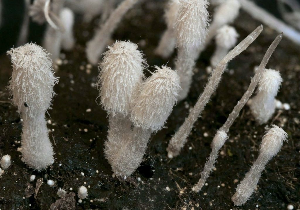 Coprinopsis pseudoradiata, ein winziger Dungtintling.