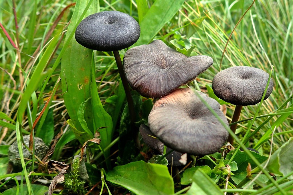Zwei weitere Wiesenbewohner. Schwärzender Bovist (Bovista nigrescens) und ein nicht näher untersuchter Rötling.