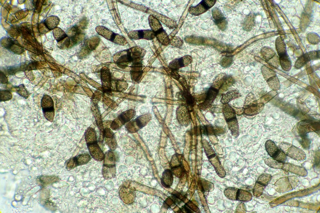 Viel seltener war ein Hyphomycet, der diese gelegentlich befällt, dunkel verfärbt und letztlich auch deformiert.
