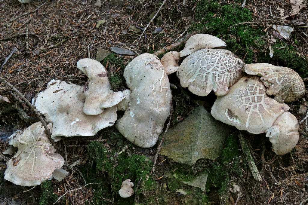 Beeindruckend waren große Gruppen des seltenen Schafporlings (Albatrellus ovinus).