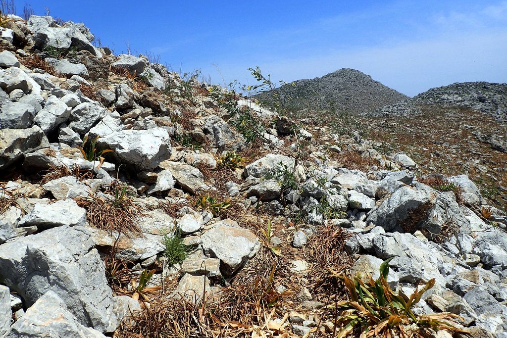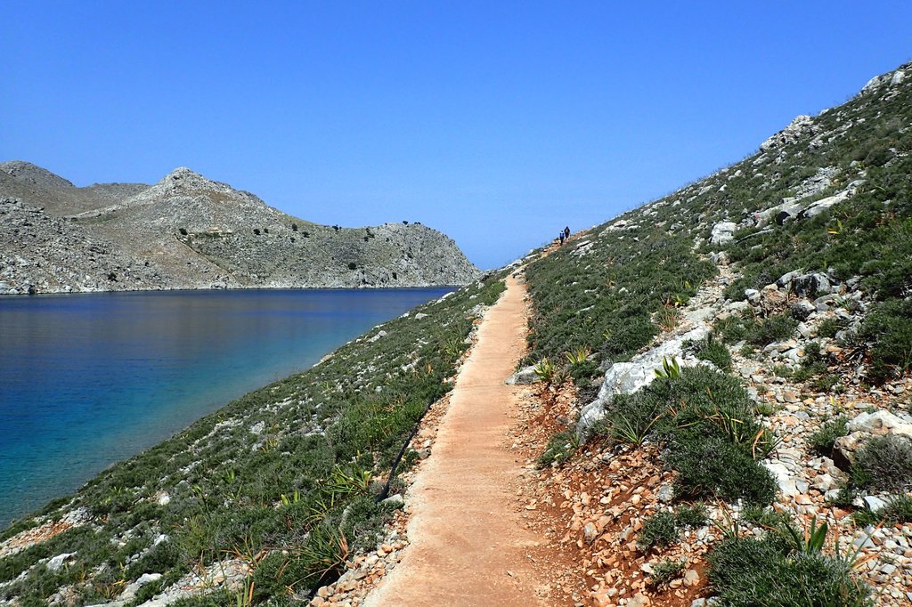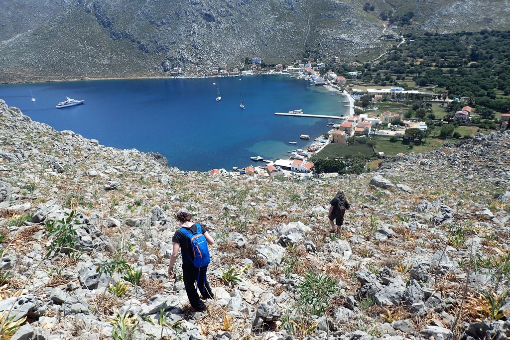 und wagten uns an einen Querfeldeinabstieg in die malerische Bucht von Pedi. Da war schon fast alpines Kettern angesagt!