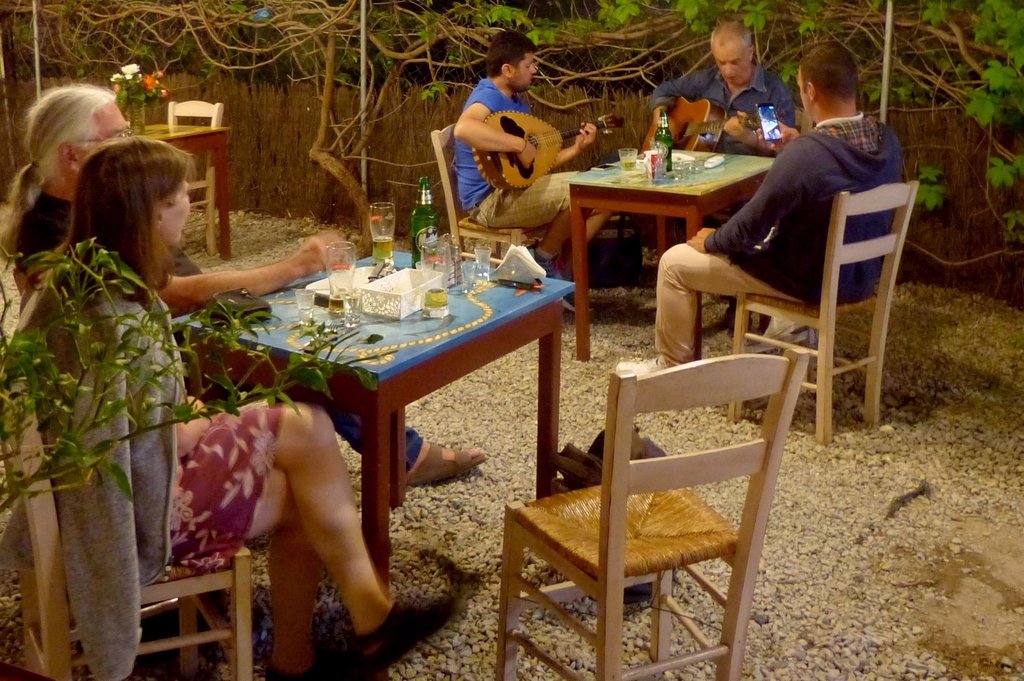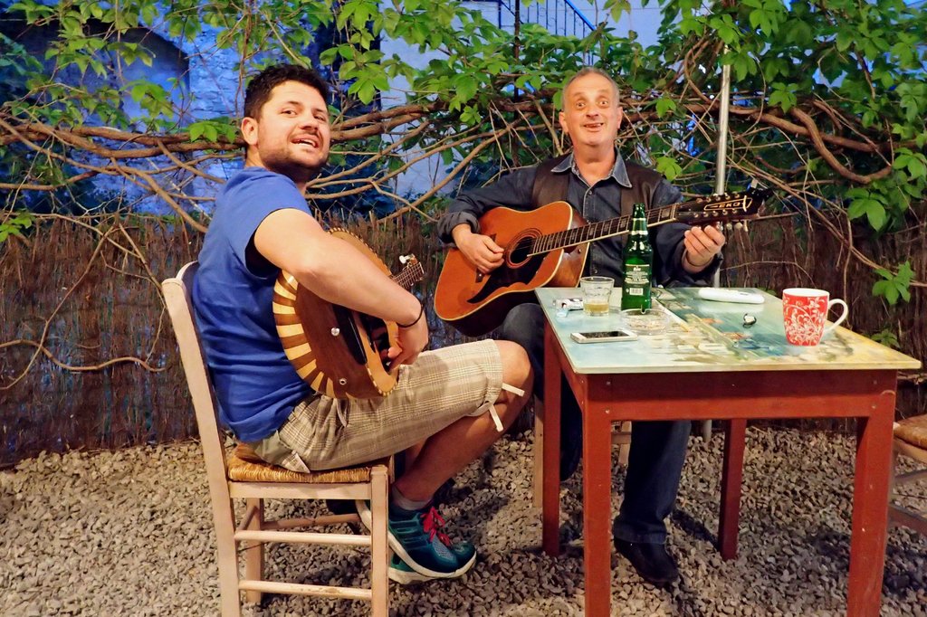 Schließlich tauchte noch Takis mit einer griechischen Laute auf, Merkuris nahm die Gitarre und beide spielten zu ihrem und unserem Vergnügen feinste griechische Weisen.