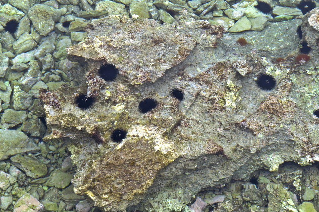 Am Wegesrand gab es wieder allerlei zu entdecken, wie diese Seeigel. Glücklicherweise gab es in den Badebuchten keine, sodass wir stets barfuß ins Wasser gehen konnten.