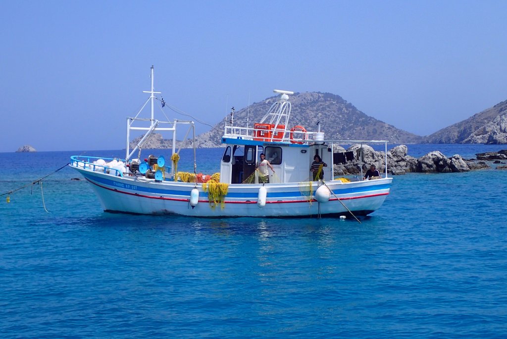 Zum ersten Badestopp ankerten wir nahe eines Fischerbootes.