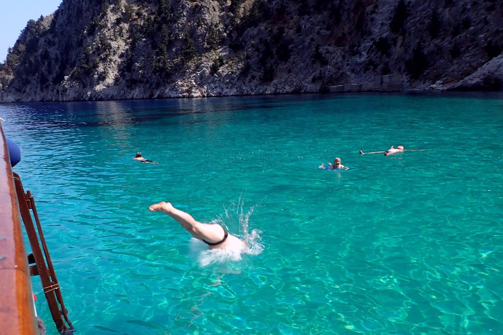 Entspannen und ganz viel Baden während einer Inselrundfahrt mit einem Ausflugsboot. Dieses hieß Poseidon und ging das erste Mal dieses Jahr auf Tour.