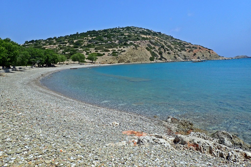 So schön die Bucht ist, zum Baden zog es uns ein paar hundert Meter weiter zum Strand des Heiligen Nikolaus (Agios Nikolaos),