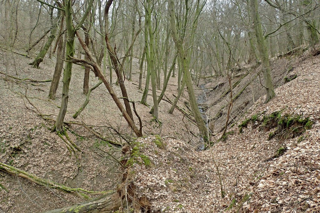 Blick ins tiefeingeschnittene Bachtal. Es zu überqueren war eine echte Herausforderung.