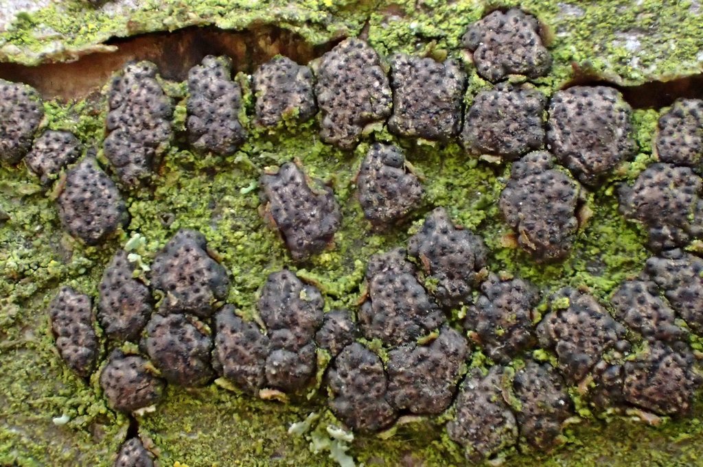 Das Sichelsporige Krustenscheibchen (Melogramma campylosporum) ist eine Charakterart an abgestorbenen Hainbuchenästen.
