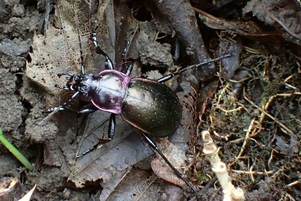 Wie den hübschen, ca. 2,5 cm großen Violettrandigen Laufkäfer (Goldleiste, Carabus violaceus), den ich Euch nicht vorenthalten will.