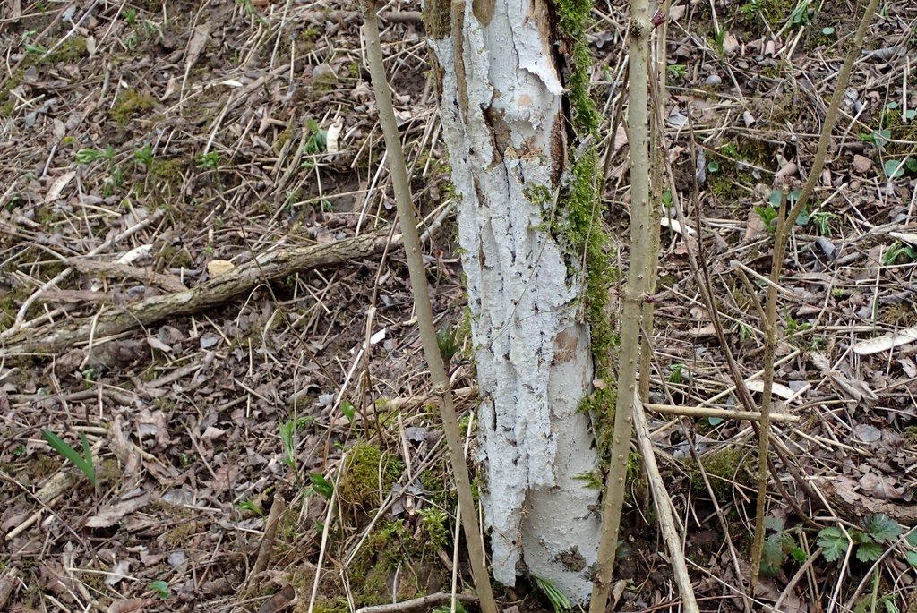 Wie weiß gekalkt sahen viele Stämme vom Holunder aus. Bei diesem auffälligen, von den meisten kaum beachteten Pilz,