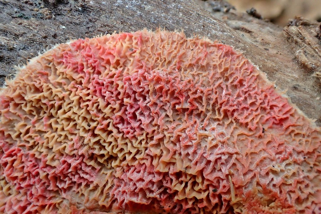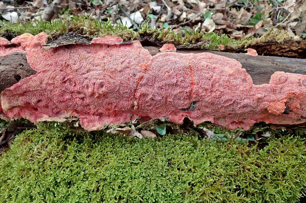 Rudi entdeckte schließlich beim Ästchendrehen einen resupinaten Pilz, den ich so flächendeckend und in dieser Farbe noch nicht gesehen hatte.