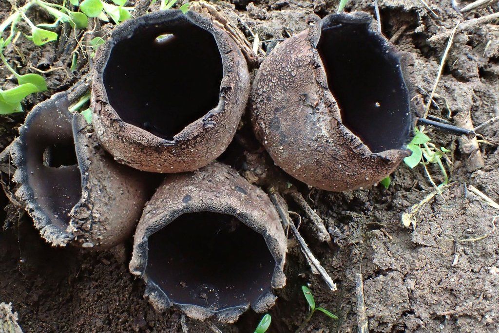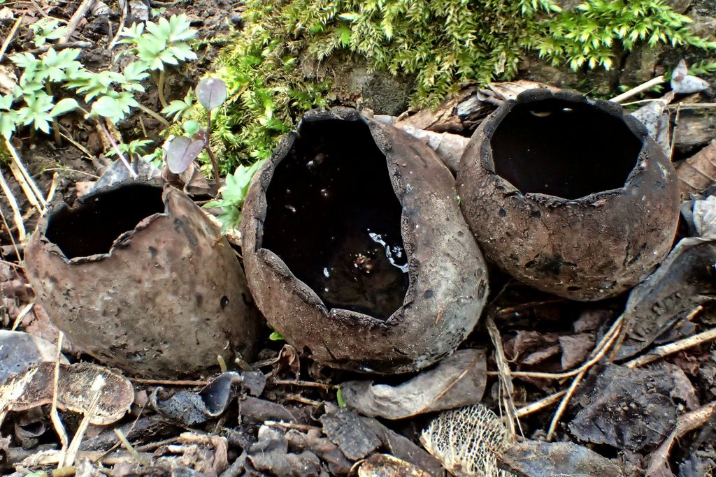 Der Schwarze Tulpenpilz (Schwarzer Kelchpilz, Urnula craterium) war ein Grund für diese Exkursion.