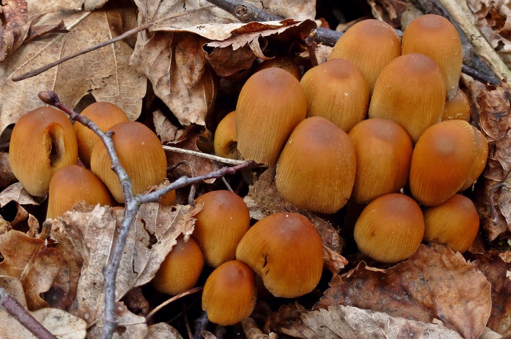 Richtige Pilze mit Hut und Stiel: Glimmertintling (Coprinellus micaceus).