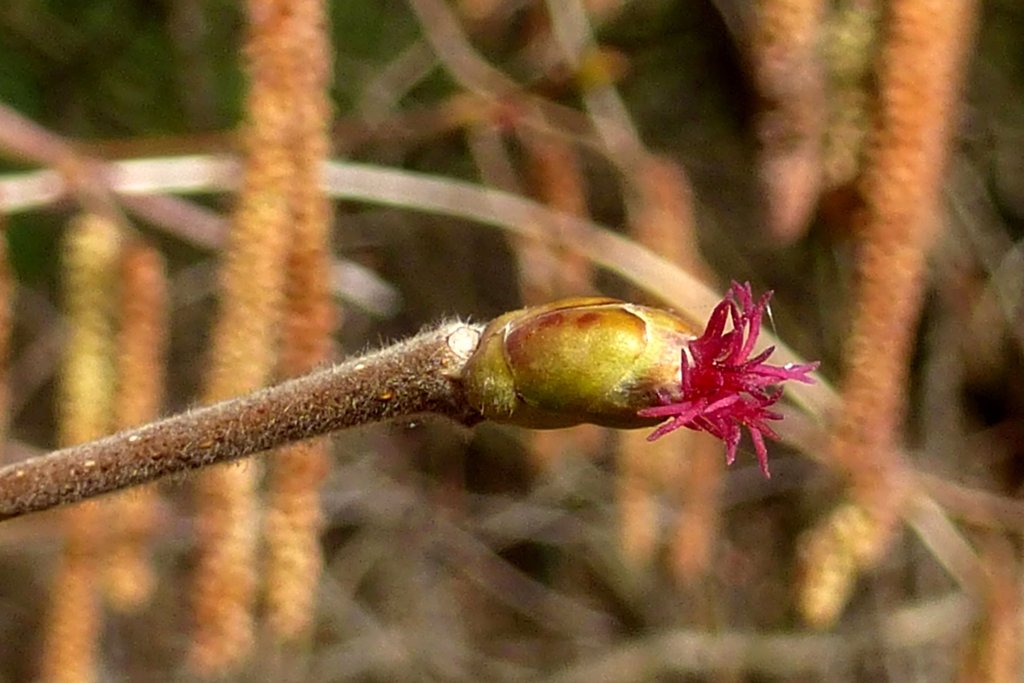 Wie z.B. die Haselnuss (weibliche Blüte).