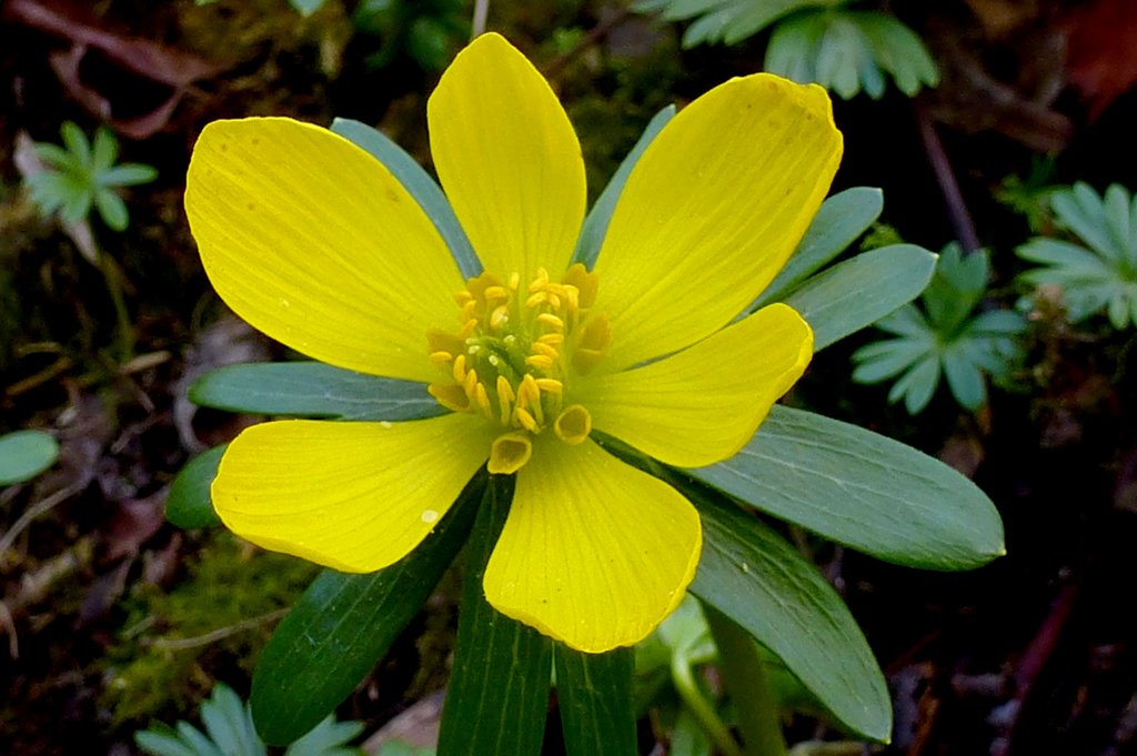 Oder der Winterling (Eranthis hyemalis).