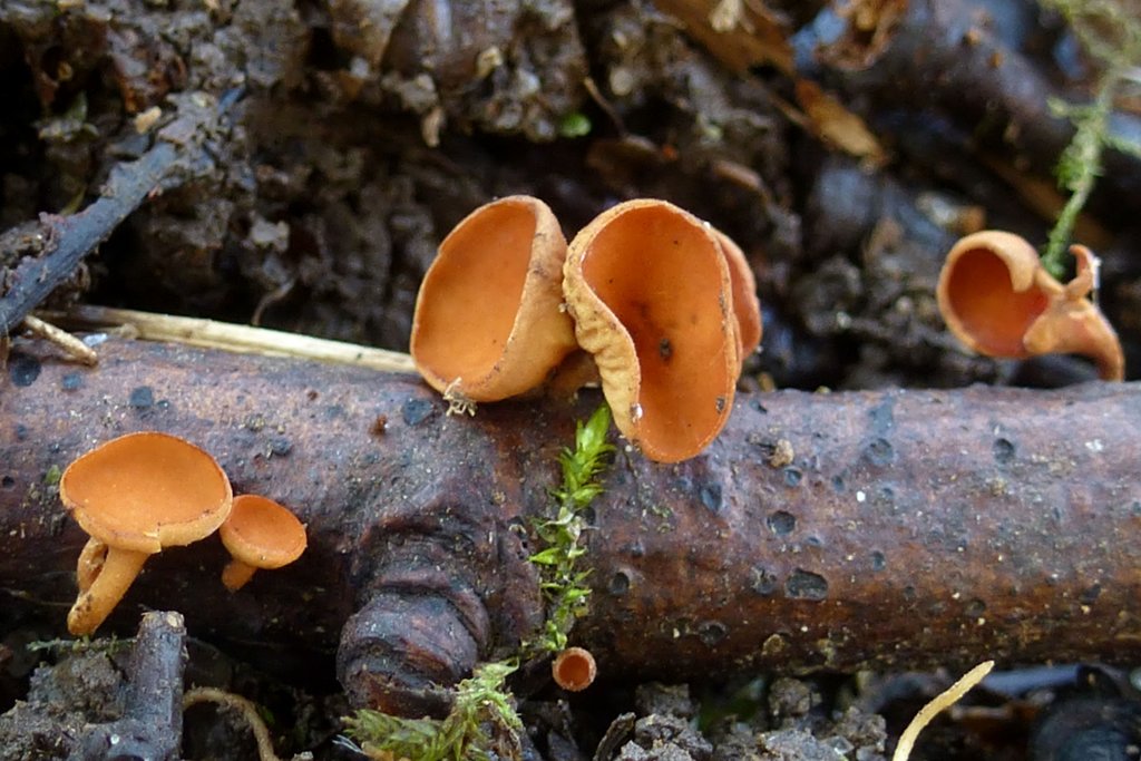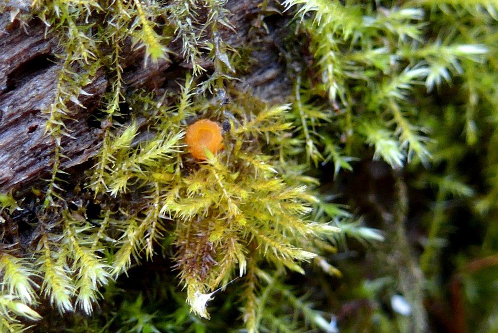Mit Wright's Moosbecherling (Octospora wrightii) konnte mir Sven auch noch den dritten in seinem Beitrag vorgestellten Becherling zeigen.