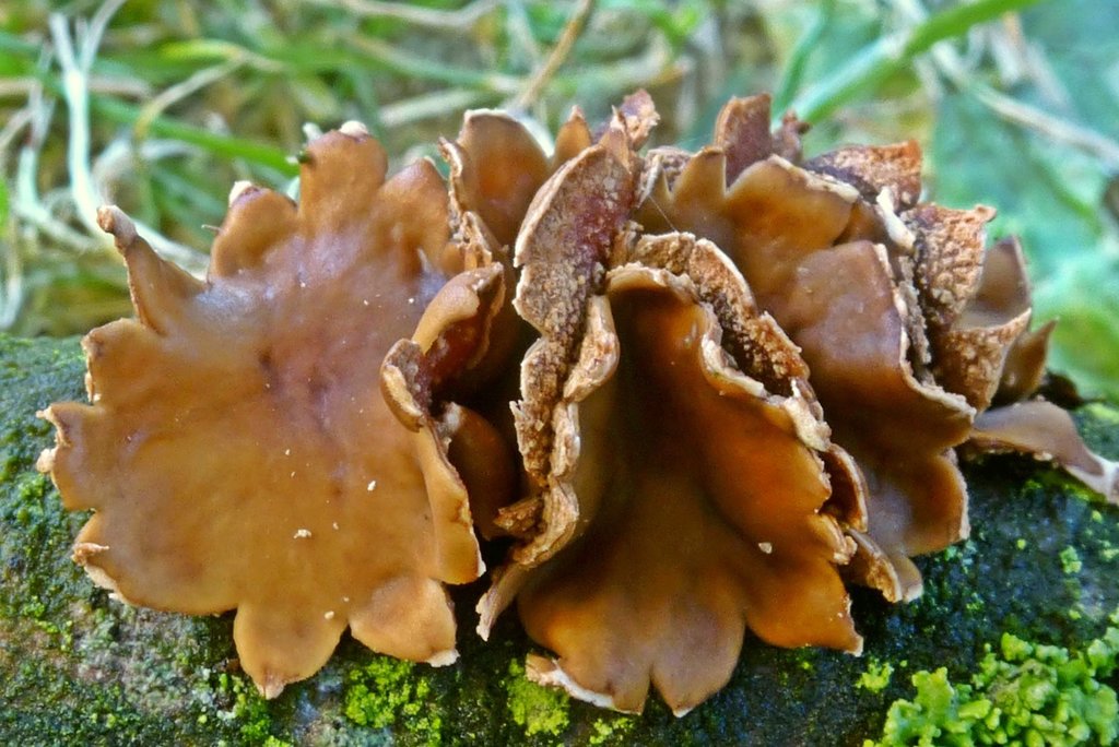 Wie den Kleiigen Haselbecherling (Encoelia furfuracea), der in mehreren Gruppen an einem abgefallenen Erlenast wuchs.