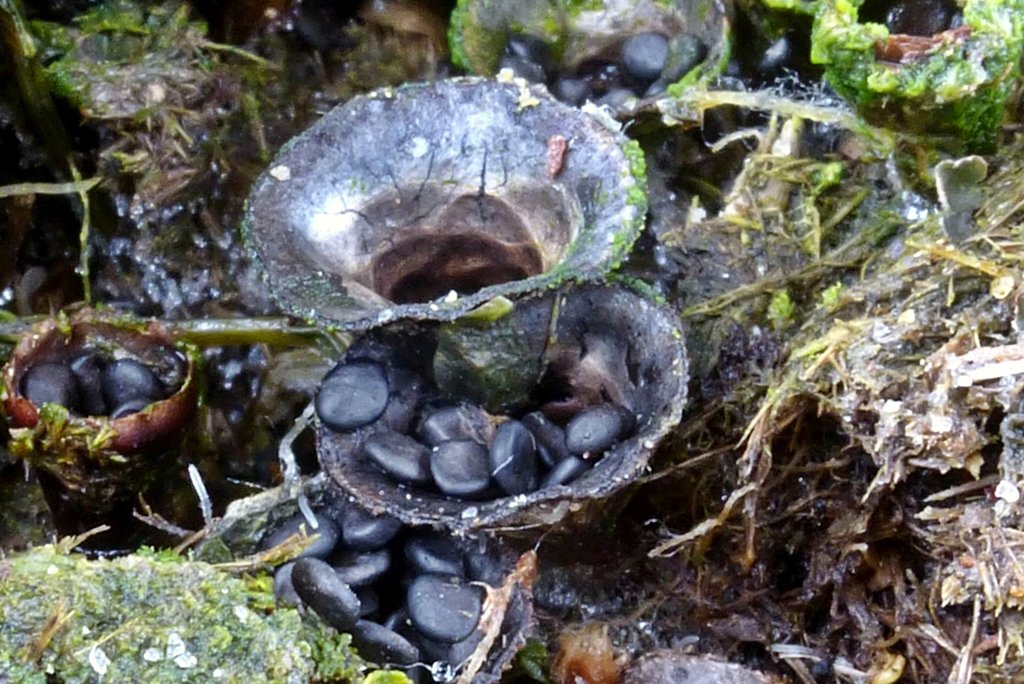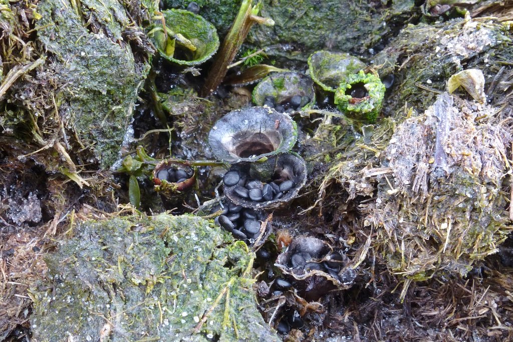 Sollte es der Dung-Teuerling (Cyathus stercoreus) sein, den ich bisher noch nie an Dung finden konnte?