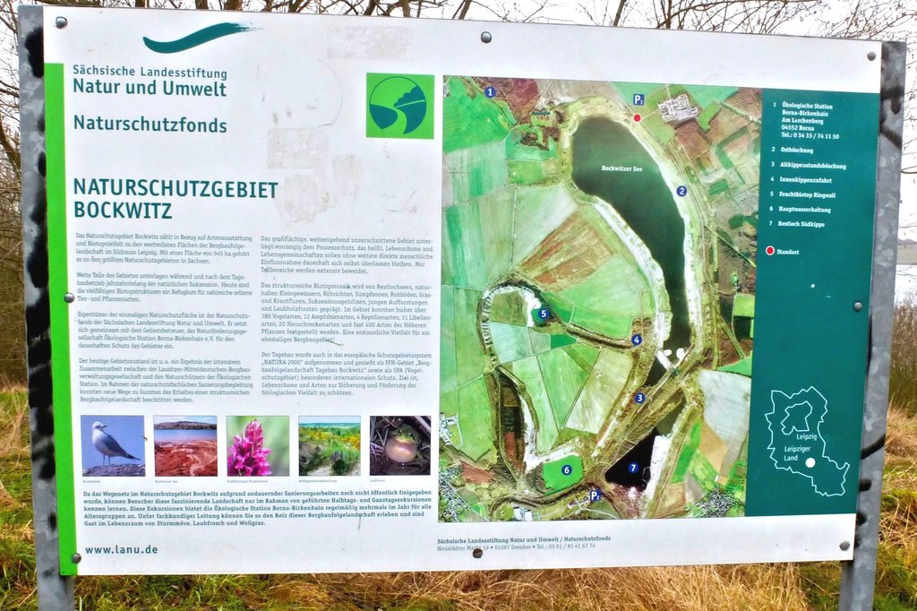 "Es umfasst einen großen Teil des Bockwitzer Sees, weitere Restgewässer und Kippenflächen bei 145 - 180 müNN." (Zitat aus: Naturschutzgebiete in Sachsen)