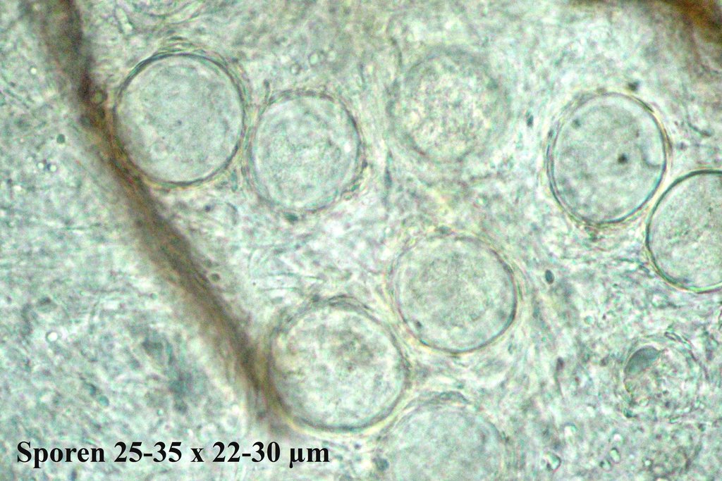 Die schwarzen Peridiolen sind schon mal ein gutes Indiz und die riesigen Sporen bringen Gewissheit!