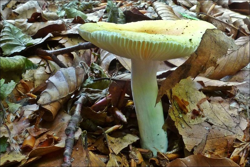 Hier einer der von Heidrun nachbestimmten Täublinge. Ich vermute, dass das Russula lutea (Dottertäubling) ist.