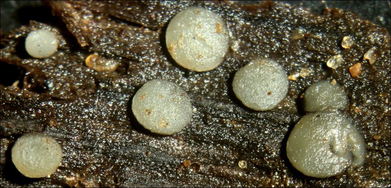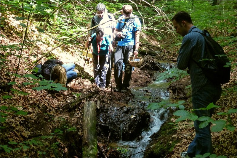 An gut durchfeuchtetem Holz im und am Bach war Mollisia uda (Polsterförmiges Submers-Weichbecherchen) recht auffällig. Danke, Ingo!