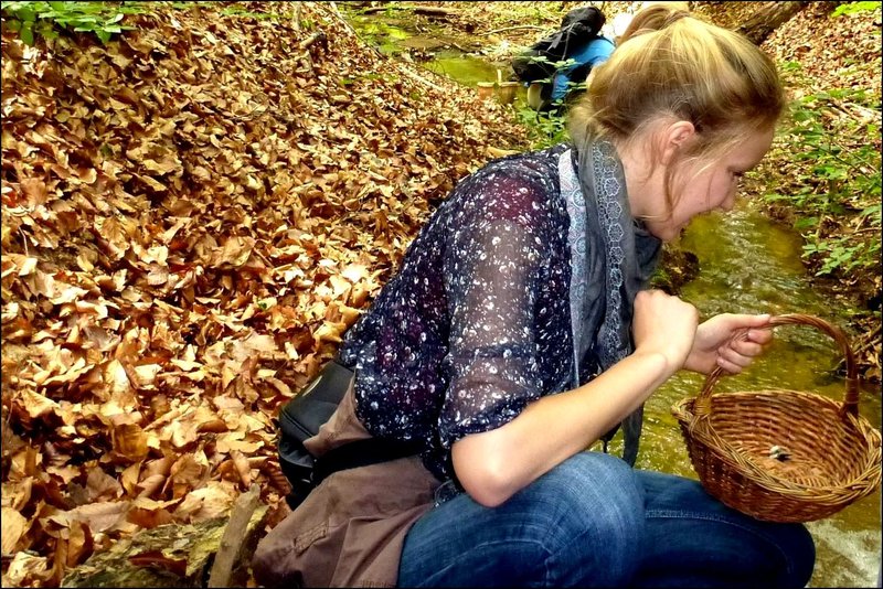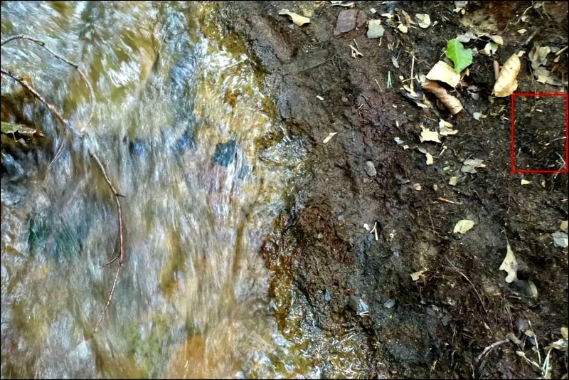 Während von den meisten noch der von Stefan entdeckte und von Anna gezeigte "Narzissengelbe" bewundert wurde, war ich bereits zum Bachufer hinabgekraxelt und sah prompt im feuchten Uferbereich winzige orange Punkte.