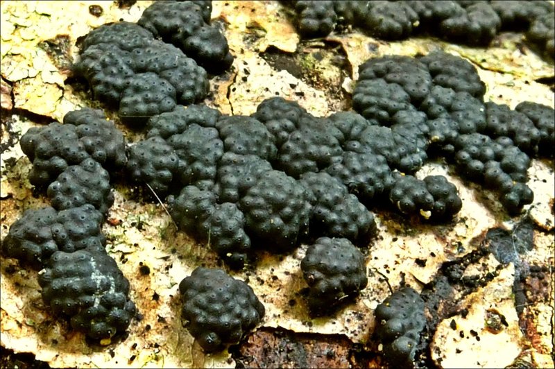 Nicht zu übersehen an Buchenholz waren die schwarzen Krusten von Annulohypoxylon cohaerens (Zusammenfließende Kohlenbeere).