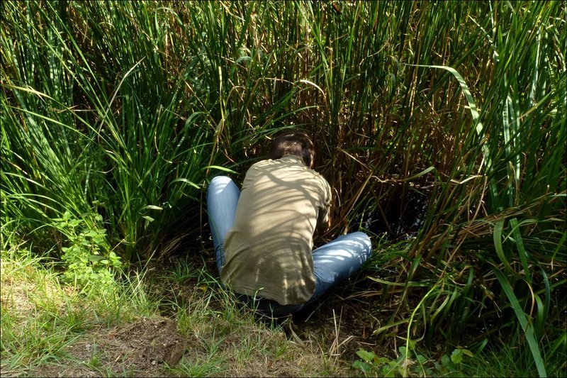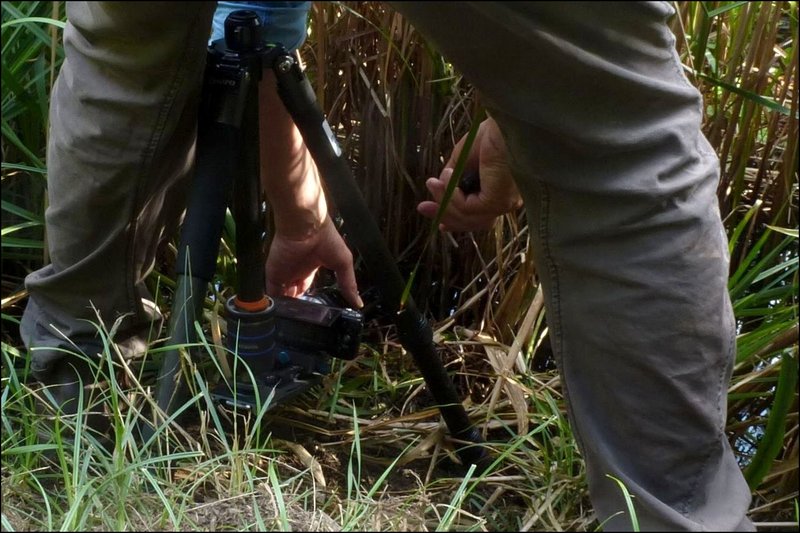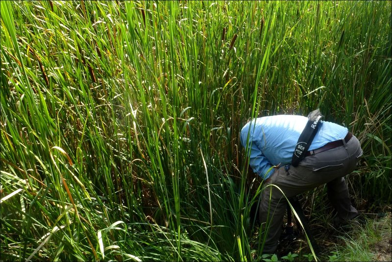 Selbst das Stativ bekam nasse Füße, als es auf der Jagd nach einem kleinen Blätterpilz in den dichten Rohrkolbenbestand platziert wurde.