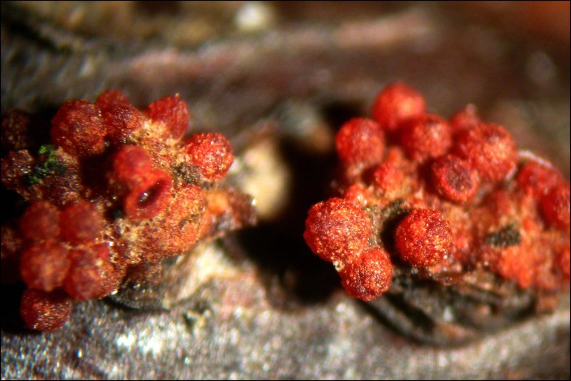 der Zinnoberrote Pustelpilz (Nectria cinnabarina).