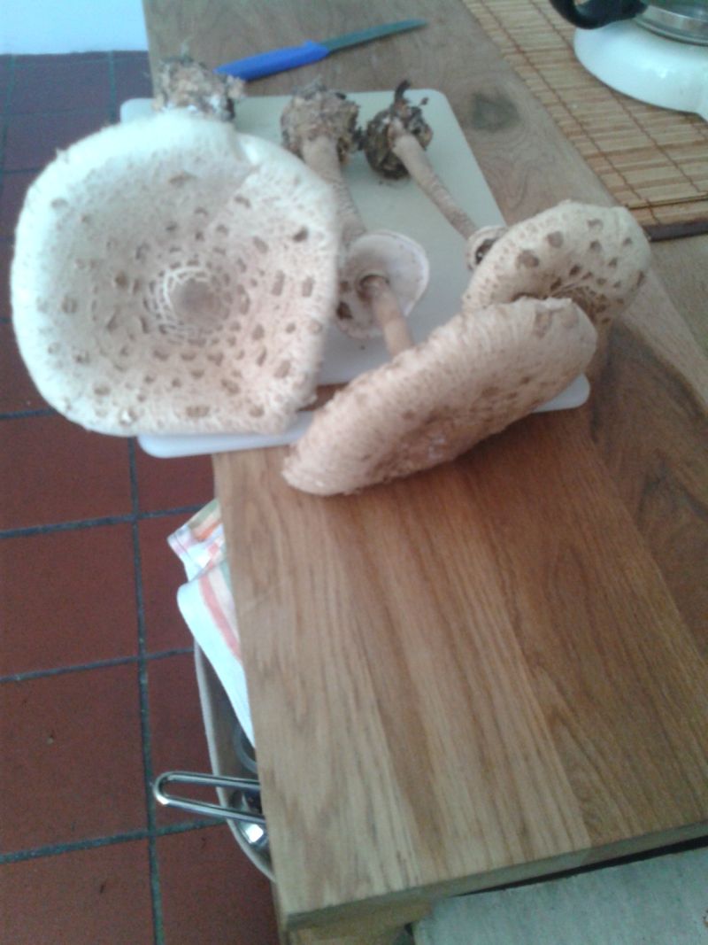 habe ich heute meinen persönlichen Erstfund beim Parasol gemacht? Ich bin mir eigentlich ziemlich sicher. Der Stiel war genatter, der Ring war verschiebbar, die Gesamtgröße passte und der Geruch war nussartig. Das einzige was nicht passte war die Lamellenfarbe, die war zum Teil schon dunkelbraun. Liegt das eventuell am Alter? Die Pilze waren auch sehr madig.