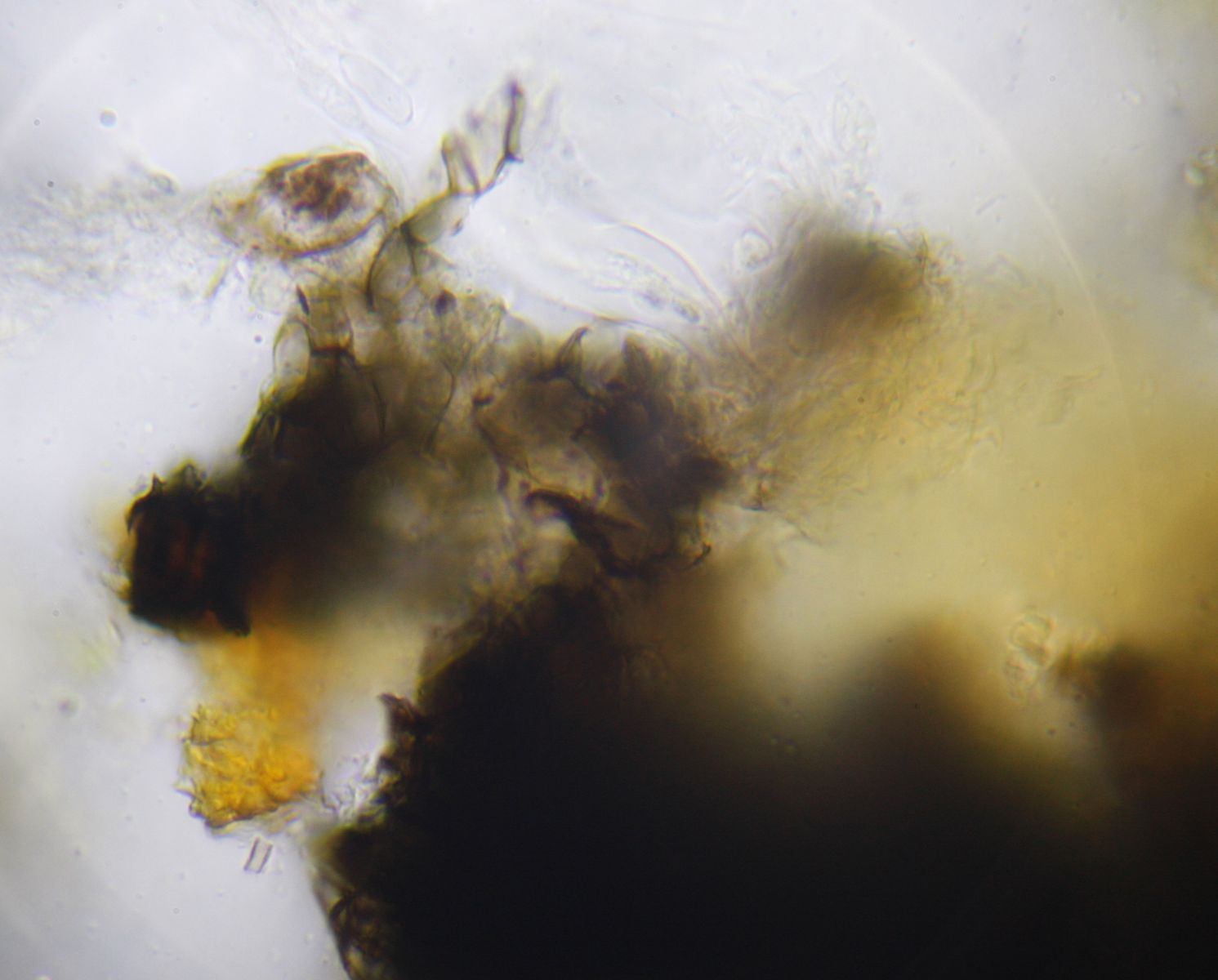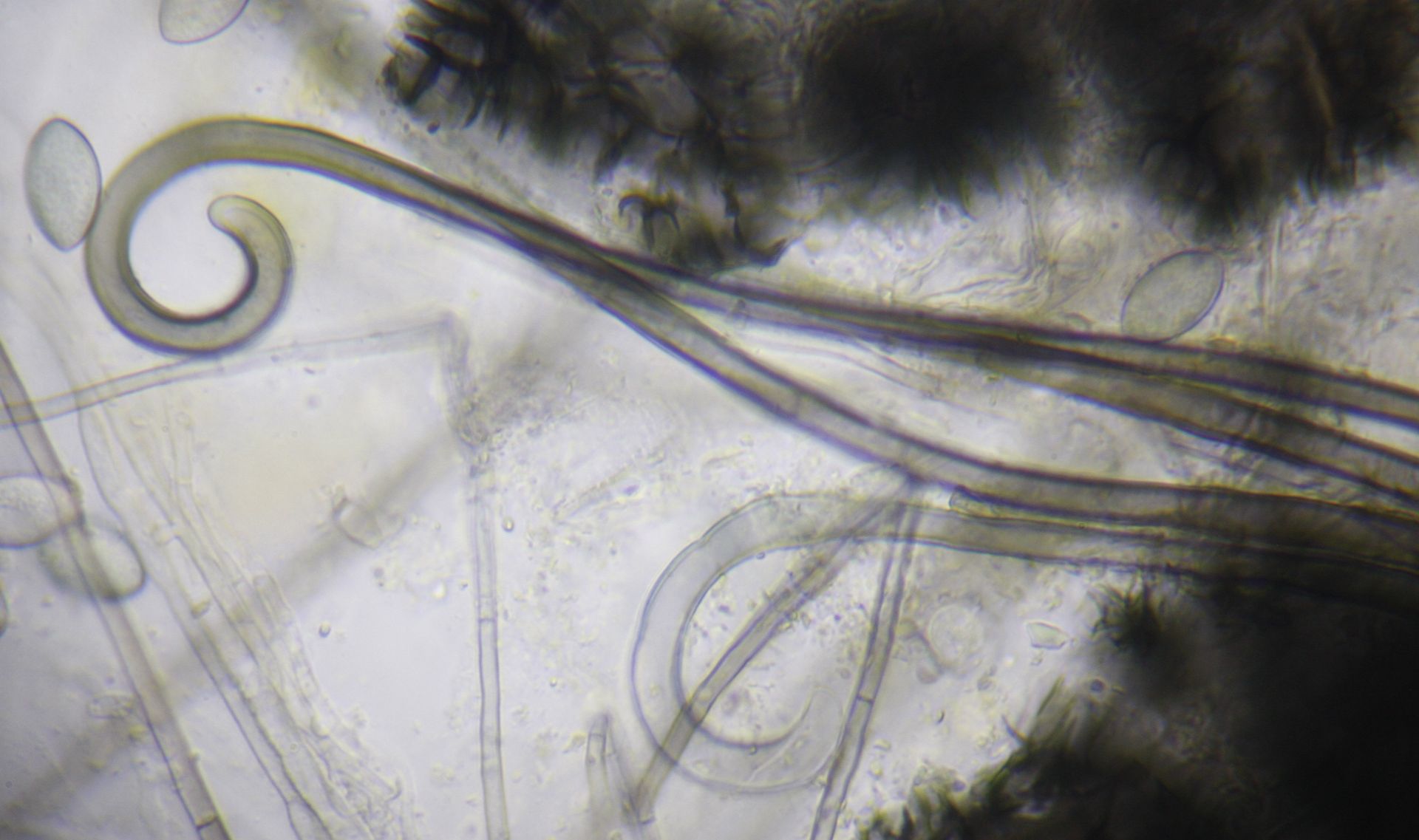 Die Sporen messen 14,8-16,2 x 8,2- 9,8 µ. Asci waren leider keine mehr zu finden. Die Haare sind glatt.