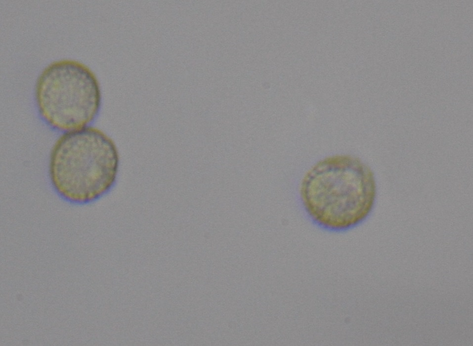 fast-rund, mit rauher Oberfläche, 8,2-9,8 x 7,5 - 9,2 µ