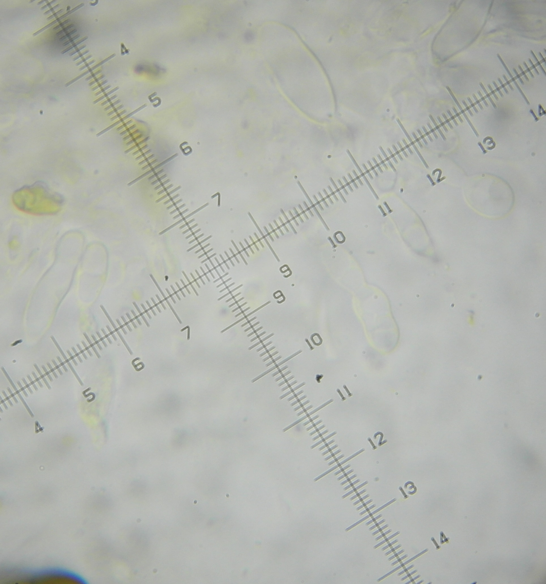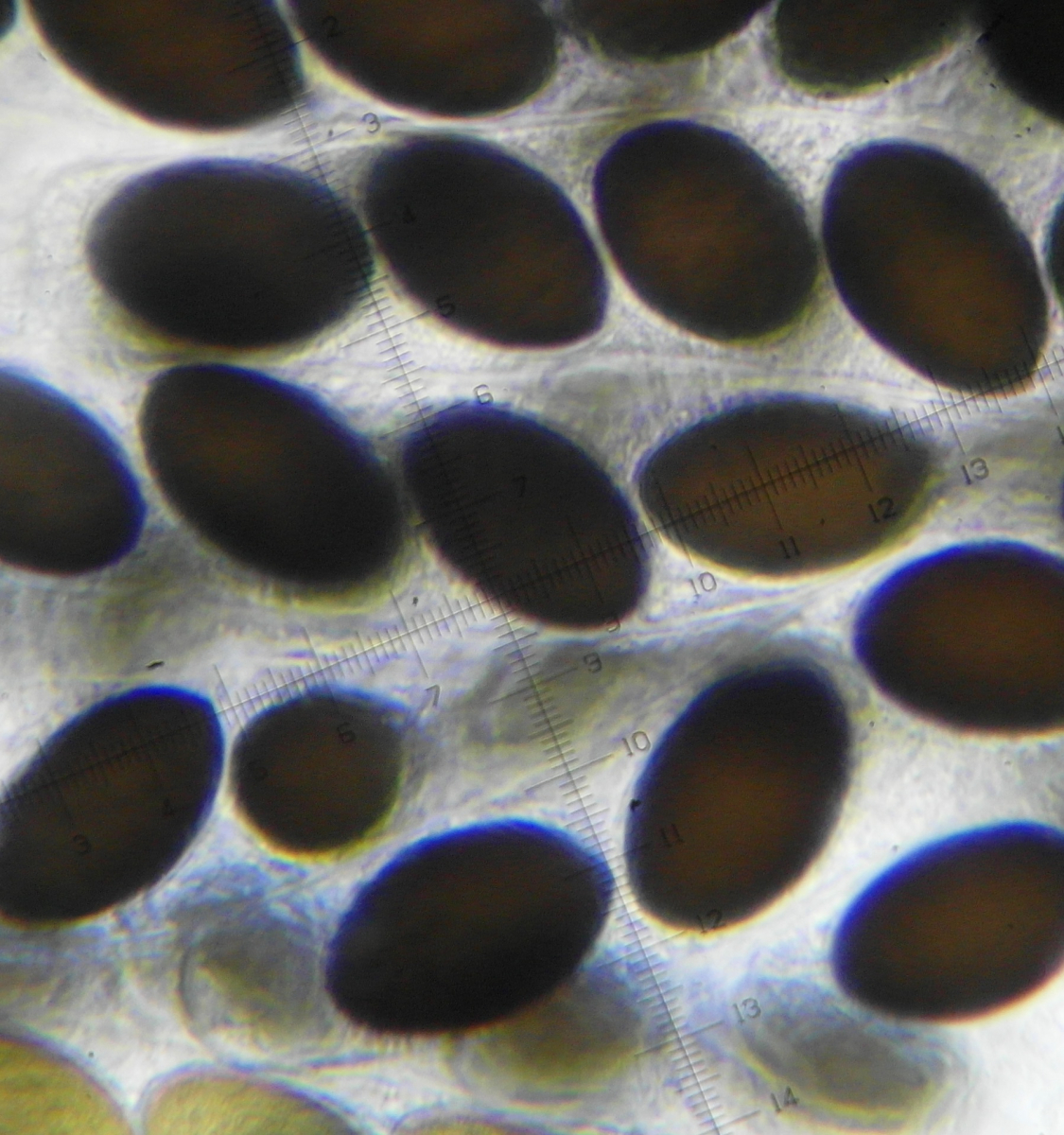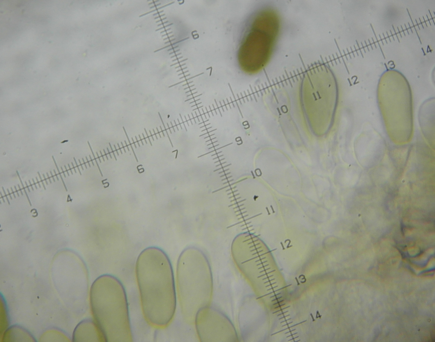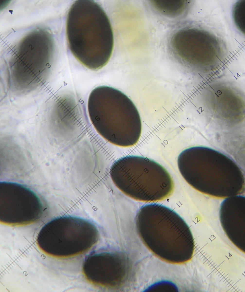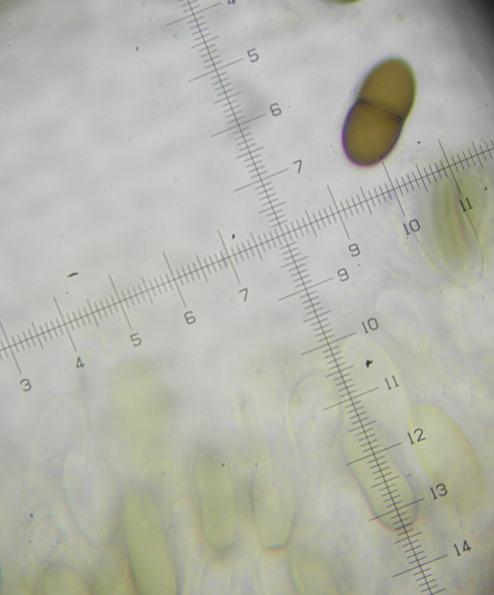Die Sporen messen 39,8-41x19-21µ. Das eine halbwegs intakte Anhängsel das ich gefunden habe hat 10µ gemessen. Die Asci sind ca.200x40µ.