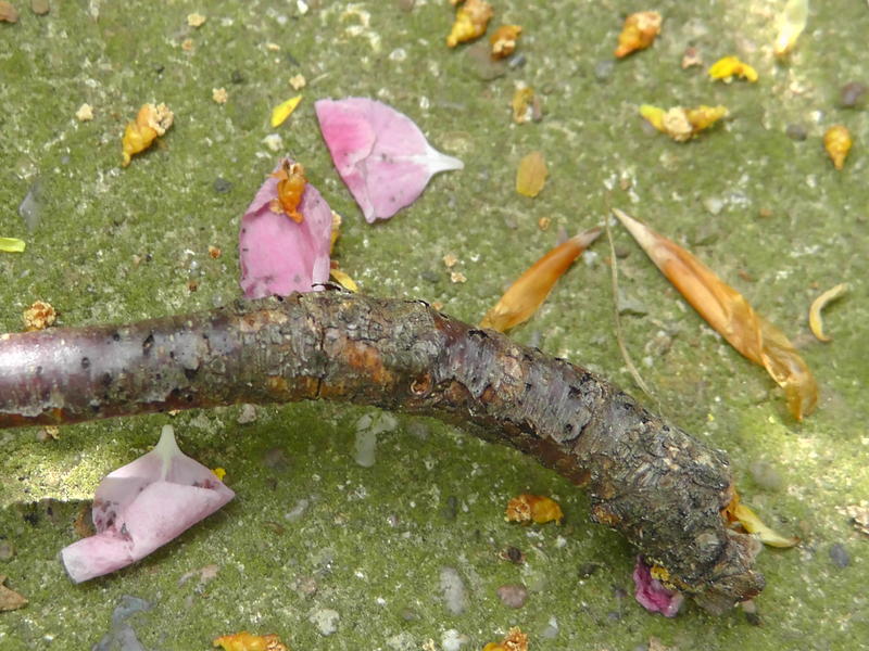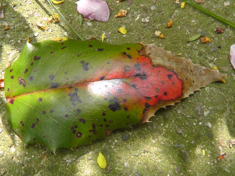 Das nächste Untersuchungsgebiet war ein kleines mit Blauregen und Ilex bewachsenes stark mit Blättern zugedecktes Beet..