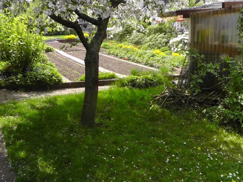 Gleich nach meiner Ankunft viel mir ein das sie ja einen großen Apfelbaum im Garten hatte.. Irgendeinen Pilz außem Früjahr hat ich in Errinerung der unter Obstbäumen oder unter Weißdorngestrüpp wächst... Nur viel mir grade der Name nicht ein.. Trotzdem ging ich zielstrebig auf den Apfelbaum los ... und tatsächlich