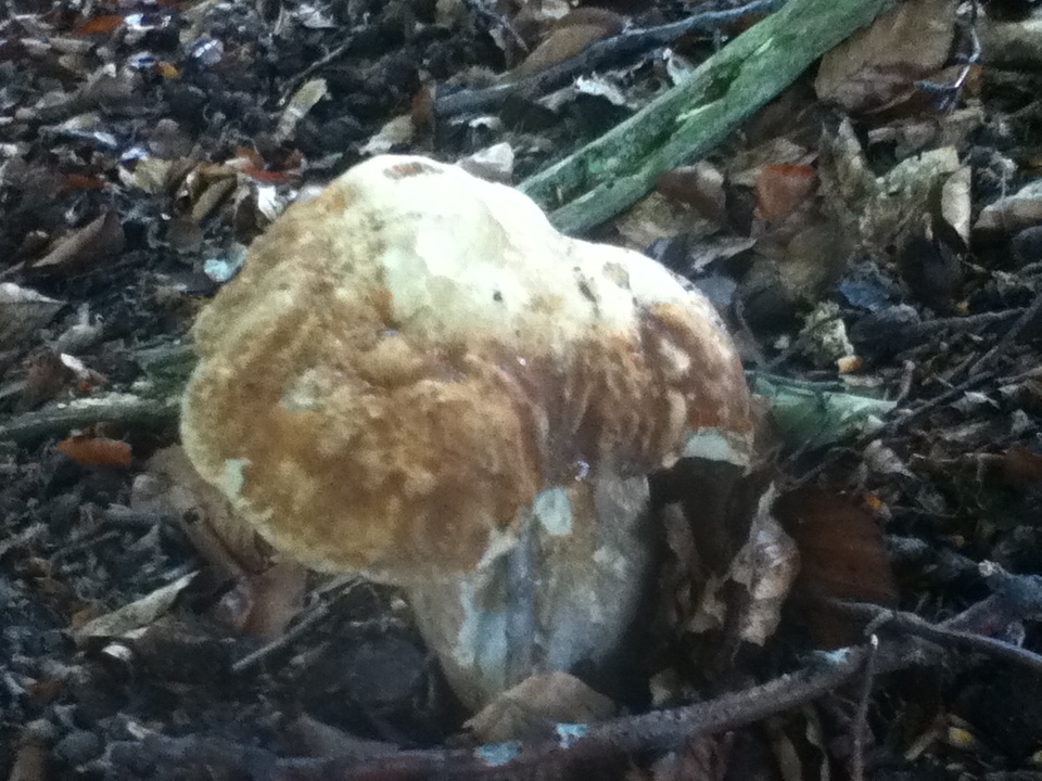 Bild 1:Der Pilz ist wohl alt.Ich dachte erst an einen Steinpilz aber am 14.Juni???? Vieleicht ein Sommersteinpilz oder so änlich?(Laubwald)