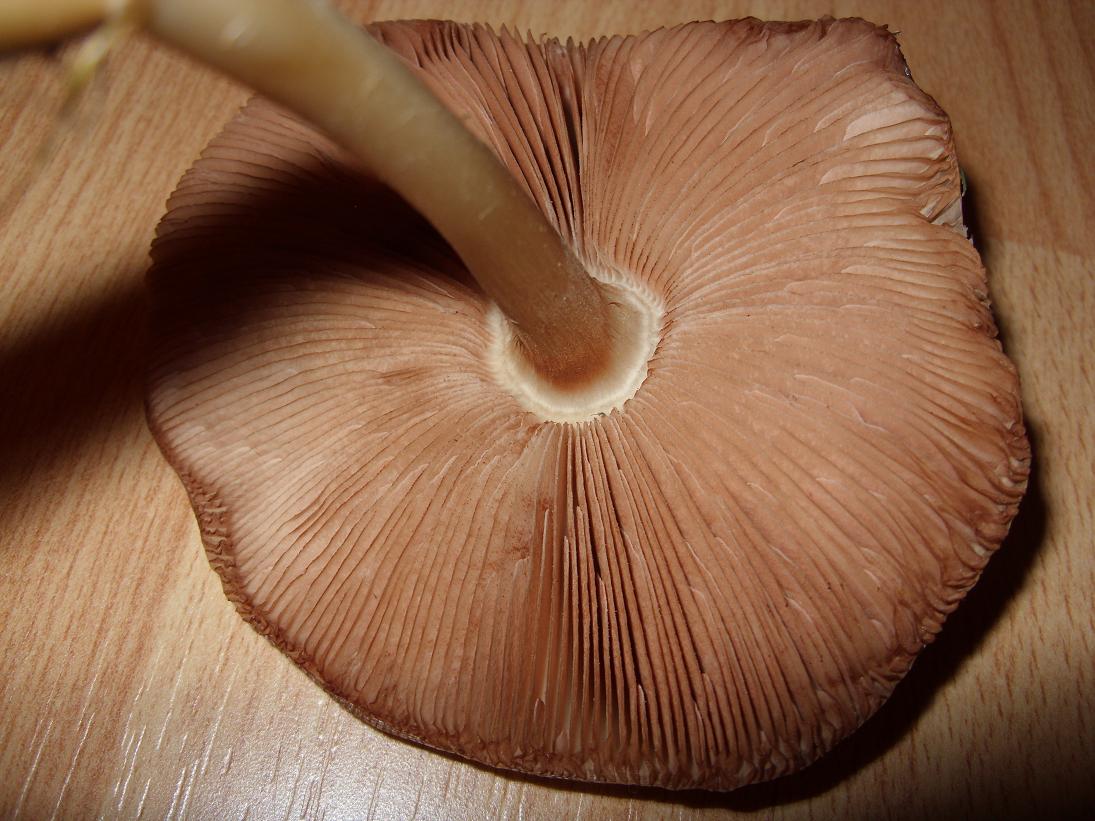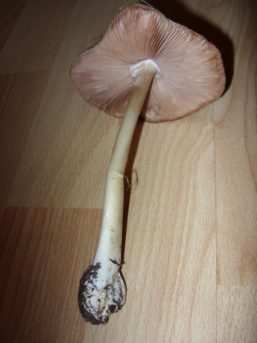 mein Arbeitskollege hat mich vorhin darauf hingewiesen, dass an einer bestimmten Stelle am Offenburger Kinzigdamm Schirmpilze wachsen, die er nicht kennt (und ich auch nicht :D). Habe abends dann mal nachgesehen und diese tatsächlich gefunden, die vereinzelt im Gras am Hang wachsen. Einen habe ich mitgenommen. Der Hut glänzt matt, die Unterseite ist rötlich mit Lamellen, der Stiel glatt und der Geruch nicht sehr auffällig (Gras, Pilz, Nuss halt...). Kann ihn jmd. bestimmen? Vll zumindest einen Tipp auf die Verwandschaft geben?