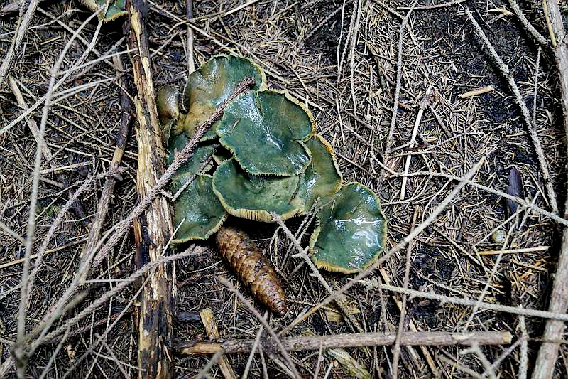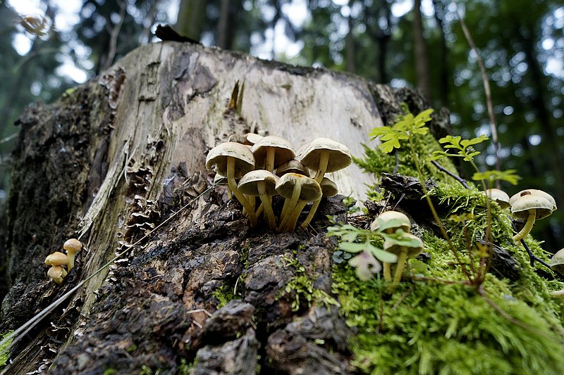 In einem kleinen Wäldchen von ca viertausen Quadratmetern Fläche, bestehend aus etwa dreißigjährigen Fichten und einigen Birken bot sich mir ein toller Anblick. Es gab in dem ganzen Wald kaum einen Platz ohne einen Pilz. Die Artenvielfalt war überwältigen, bei Art dreißig hörte ich dann auf zu bestimmen und zu zählen. Vom Schiefknolligen Chamignon über Fichtenreizker sowieso bis zu Steinpilzen, Rotkappen, Maronenröhrlingen, div. Schleierlingen Rißpilzen, Nebelkappen und violetten Rötelritterlingen bis zu Halimasch und Grünblättrigen Schwefelköpfen und und und...