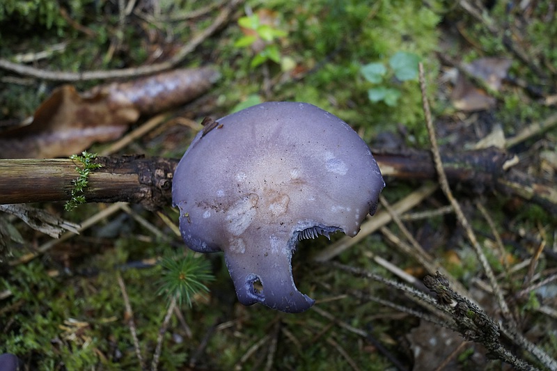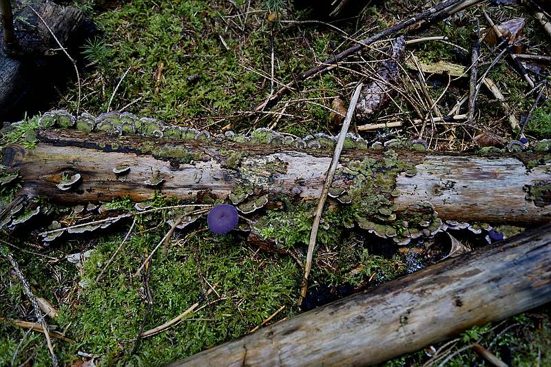 Violette Lacktrichterlinge und Schmetterlingstramete?