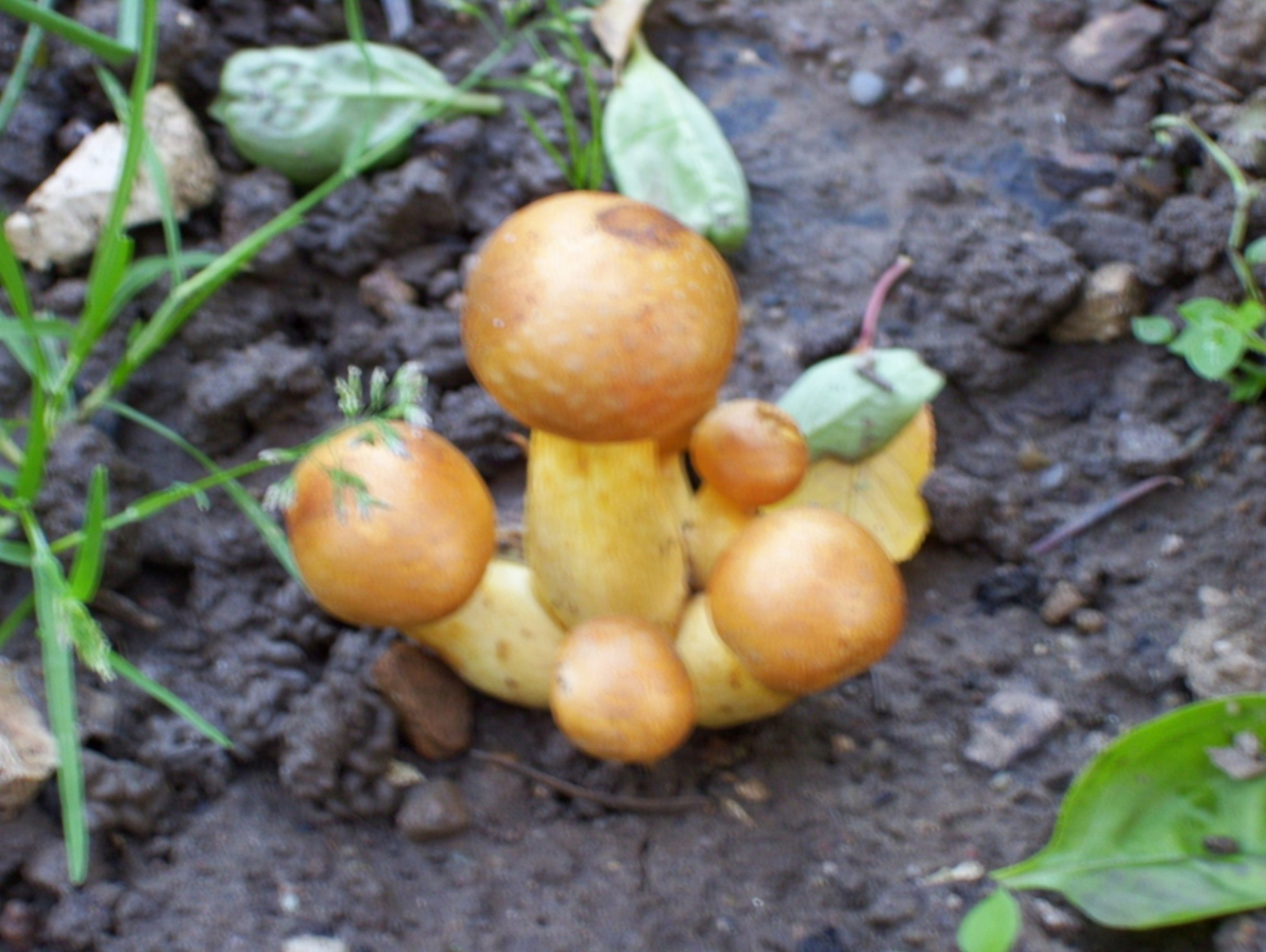 Kennt jemand diesen Pilz? Er wächst in unserem Garten! Direkt neben dem Basilikum! Der höchste ist ca.7 cm hoch und der größte Schirm hat