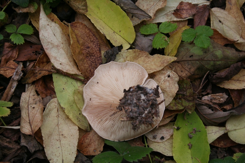 ist ein Hutpilz mit Lamellen. Diese Lamellen sind schwärzlich.