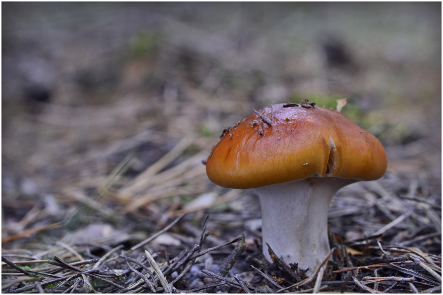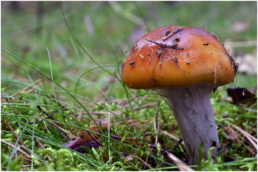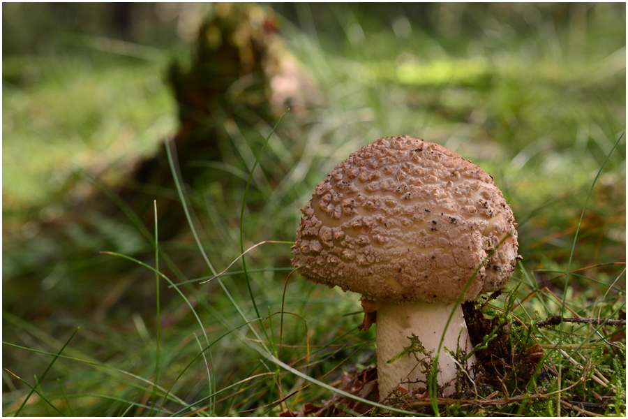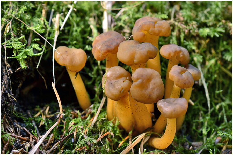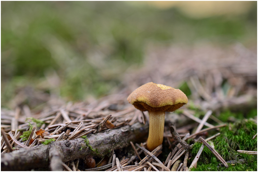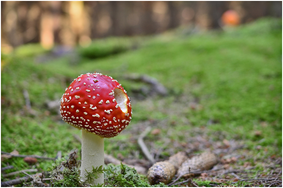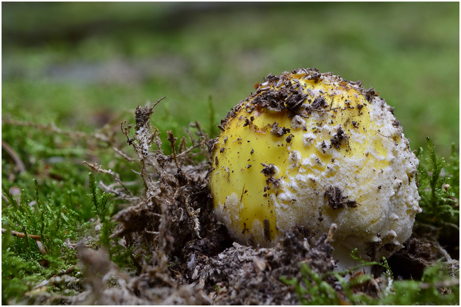 Die Fliegenpilze sieht man ja öfter mal in ausgeblassten Farben, auch mal ins Gelbliche gehend, aber so jung und so gelb - der musste auf's Foto.