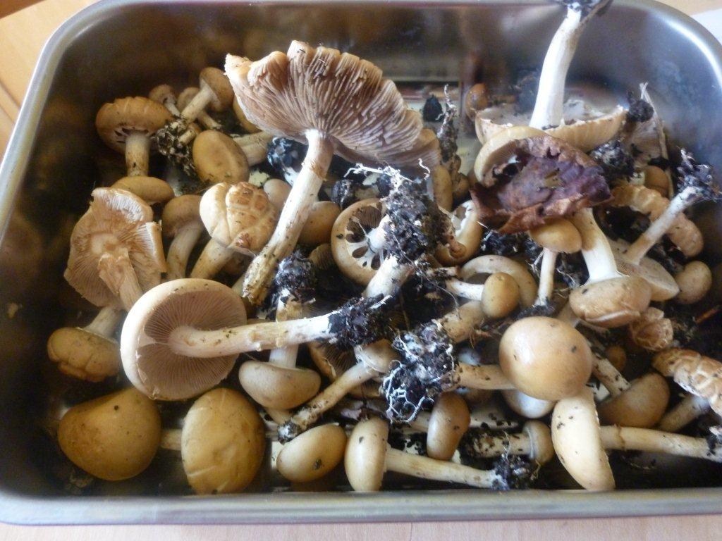in unserem Vorgarten (im Rindenmulch) haben sich Pilze breitgemacht. Vielleicht hat ja jemand eine Idee, was das für welche sind, und insbesondere, ob die giftig sind? Ich hab nämlich einen Zweijährigen, der sehr auf Janosch steht (... wenn man einen Freund hat, der Pilze finden kann, dann braucht man nie zu verhungern, nicht wahr, Bär? ...) und ansonsten auch besagten Vorgarten gern plündert (wir haben da diverse Beerensorten). Yiek! Schon mal vielen Dank!