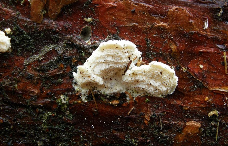 Der starke Algenbewuchs passt ja auch zu Porostereum. Zusammen mit der Hutbildung und der Konsistenz habe ich den einfach mal so abgelegt.